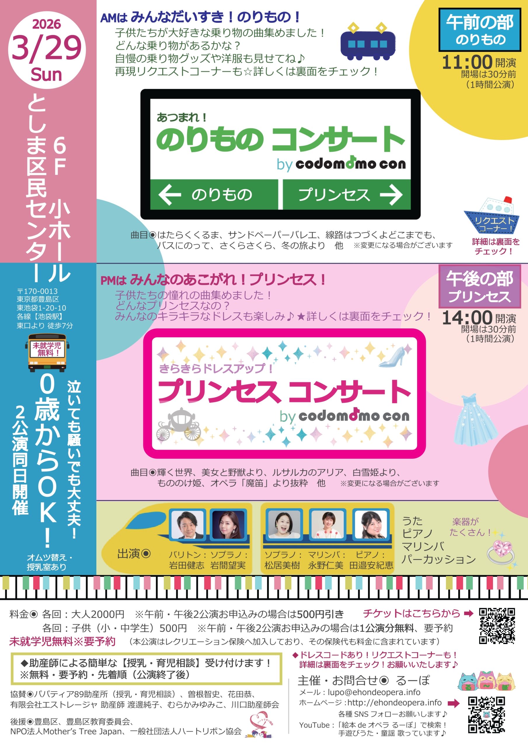 大人気のcodomomo con♪今回は【のりもの】と【プリンセス】のコンサート!参加企画やリクエストも募集中!